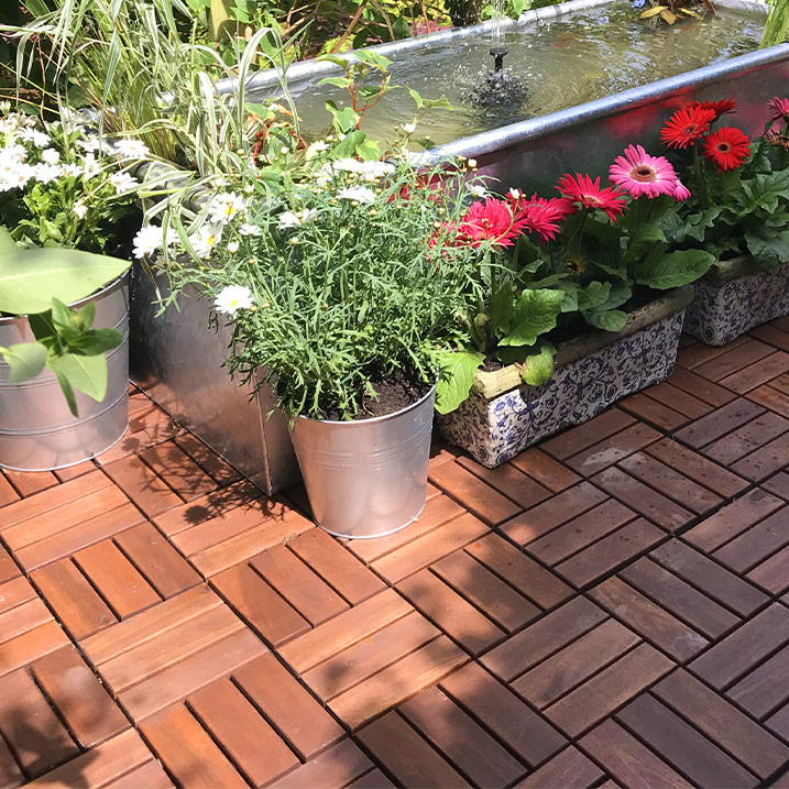 WPC Fliesen 1m²-6m² Terrassenfliesen Set Holzfliesen 30x30cm Balkon Pool Garten Variante44x Klassik terrakotta. In Holzoptik Bodenbelag 11 Stück WOLTU GTF001hgr WPC. Auf Balkonen findest du häufig Beton vor.